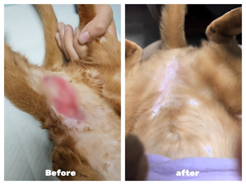 पशु चिकित्सा लेजर से उपचार से पहले और बाद की तुलना